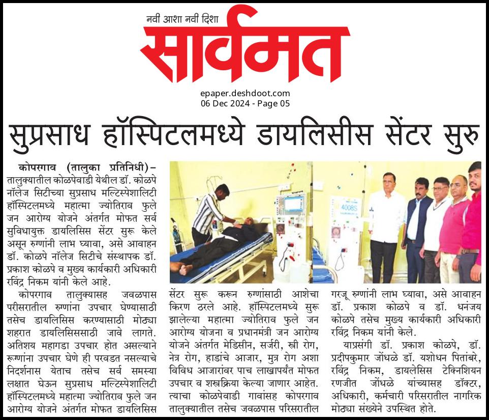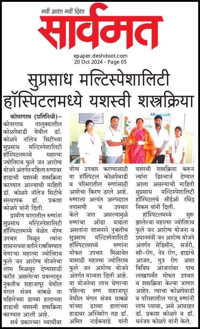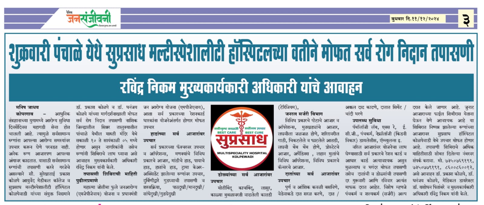 सुप्रसाध मल्टीस्पेशालिटी हॉस्पिटल कोळपेवाडी |
